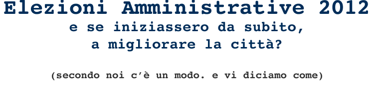 Proponiamo, ai partiti e alle liste civiche che parteciperanno alle prossime elezioni amministrative di Como nel 2012, di destinare parte delle loro risorse per iniziare da subito a migliorare la città. Le promesse, siamo certi, le manterranno nei 5 anni successivi; intanto però, qualche piccola dimostrazione.